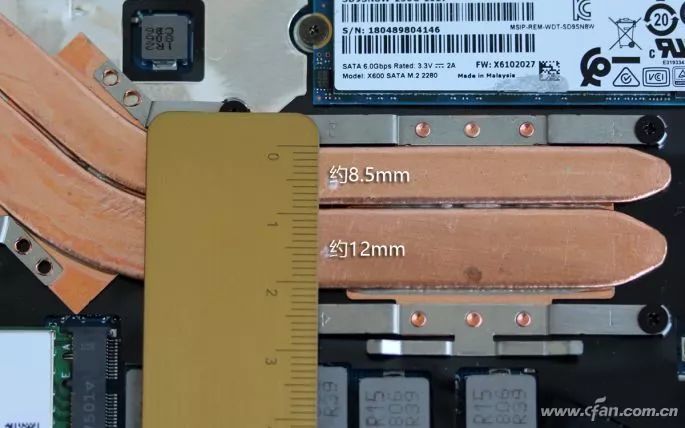 現實中,輕薄本的“空間危機”已經非常嚴重,散熱鰭片的面積更是越來越小,甚至淪落到與熱管一樣寬,長度也只有40mm左右。